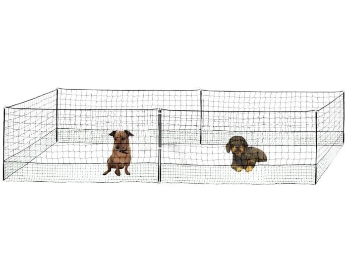Vous reconnaissez la situation : vous allez faire du camping et votre compagnon à quatre pattes s’enfuit sans cesse. Vous ne souhaitez bien sûr pas garder votre chien en laisse pendant toute la durée des vacances. Un filet de clôture est la solution. Un filet de clôture est très pratique car vous pouvez l’utiliser de différentes manières. Par exemple, en tant que clôture complète ou en tant que forme de u devant un auvent. Avec les mâts et les cordes fournis, les possibilités sont infinies.
