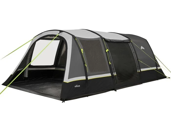 L’Hudson 4 Poly Easy Air CoolDark, comme son nom l’indique, est une tente qui peut être installée facilement grâce aux tubes d’air intégrés. Au lieu des poteaux de tente traditionnels, l’Hudson est entièrement monté avec des tubes d’air gonflables. Les quatre tubes d’air peuvent être gonflés très rapidement de manière indépendante avec la pompe à main fournie. Sur le côté extérieur, il y a des rabats pratiques derrière lesquels se trouvent les valves. Vous n’avez donc pas besoin de vous glisser sous la toile de tente pour monter la tente. Les tubes d’air offrent non seulement une facilité de montage, mais ils sont également très solides et résistants aux chocs. Là où les poteaux de tente traditionnels peuvent se plier ou même se casser sous de fortes rafales de vent, les tubes d’air se balancent simplement avant de revenir à leur forme originale. Vous pouvez donc camper en toute tranquillité, même par mauvais temps. Pour une stabilité supplémentaire, un tube d’air gonflable supplémentaire est fourni pour être placé dans le toit afin de le tendre davantage.