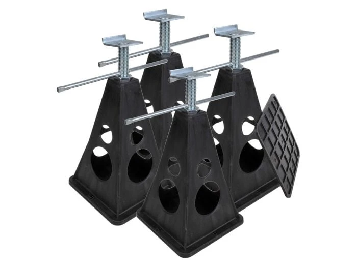 Le kit de chandelles de levage Obelink est la meilleure solution lorsque votre caravane ou camping-car reste stationné pour une longue durée.