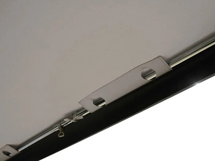 Une armature solette en acier ou en aluminium peut être commandée en option avec la solette. Vous vous trouvez sur un emplacement ouvert ou sur la côte ? Alors optez pour l’armature en acier. Vous vous trouvez sur un emplacement abrité ou vous ne pouvez pas trop charger la caravane ? Alors optez pour l’armature en aluminium. Les crochets de l’armature de la solette peuvent être accrochés dans les œillets fixes de la caravane. Si la caravane n’est pas équipée d’œillets fixes, vous pouvez fixer l’armature de la solette au double jonc de la solette avec les clips SHS optionnels.