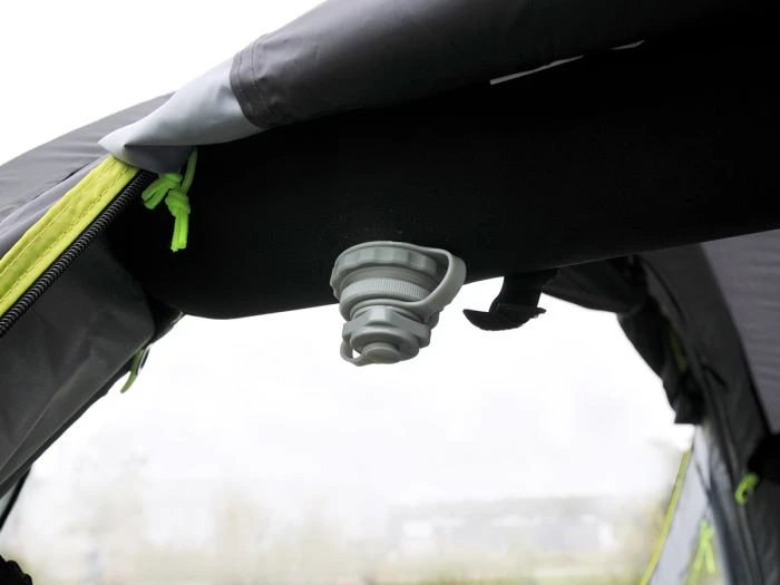 Comme son nom l’indique, le Trinity Easy Air est un auvent fourgon gonflable. Cela signifie que l’auvent est entièrement équipé de tubes pneumatiques gonflables au lieu d’arceaux traditionnels. L’auvent a deux tubes pneumatiques qui peuvent être gonflés séparément avec la pompe manuelle fournie. La pompe manuelle est équipée d’un manomètre et d’une soupape de surpression, ce qui permet de ne jamais gonfler trop d’air dans les tubes pneumatiques. Deux tubes pneumatiques gonflables pour le toit sont également inclus. Ils apportent une stabilité supplémentaire et maintiennent le toit tendu. Les tubes pneumatiques du toit sont également équipés de bandes velcro pratiques permettant de cacher soigneusement les câbles électriques d’une lampe.