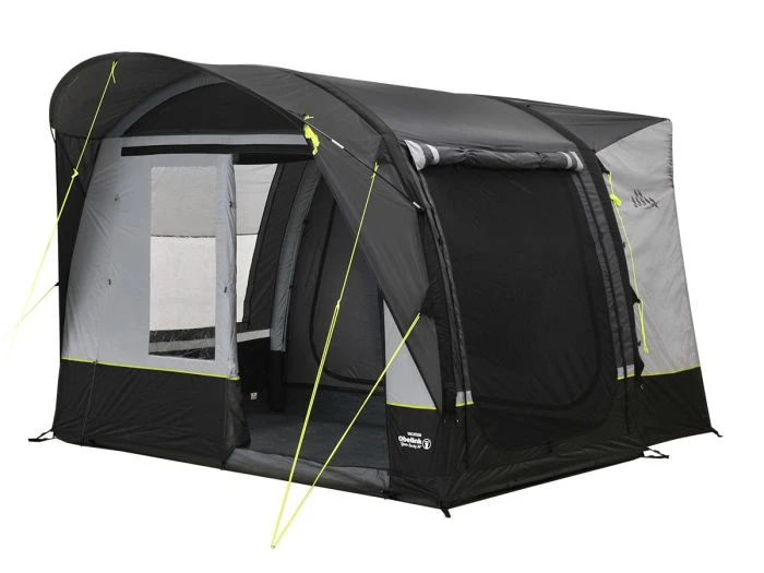 L’Obelink Vacation Easy Air est pourvu de tubes pneumatiques gonflables. Les valves sont accessibles depuis l’extérieur de l’auvent. Trois barres transversales gonflables pour le toit sont fournis, ce qui vous permet de tendre d’avantage le toit pour qu’il y ait un bon drainage et que l’auvent soit très stable. La pompe manuelle est également fournie !
